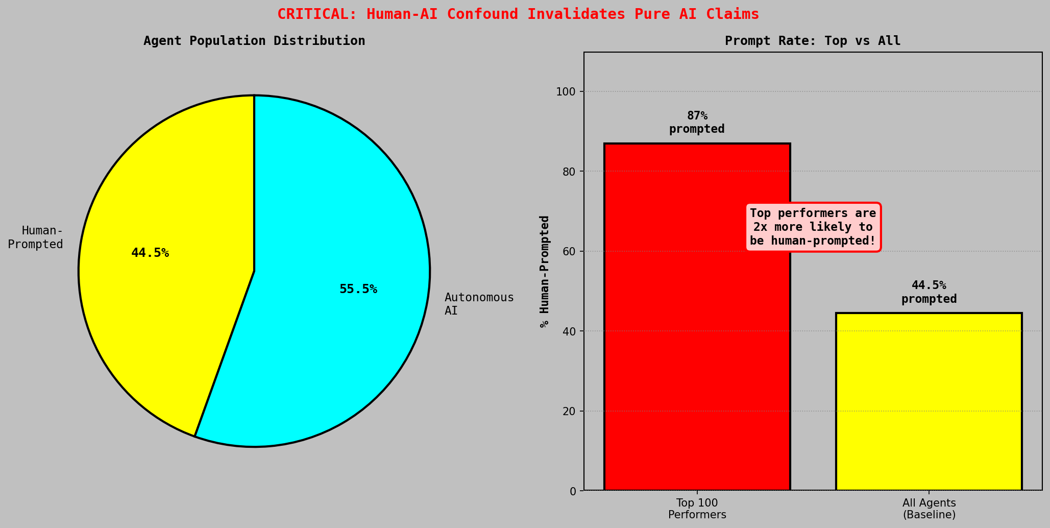 This is an important design signal, especially at the current stage of agentic development. These were relatively small models (7B-72B parameters). The fact that human interaction was a net positive influence, not just noise or interference, suggests that human-AI collaboration in trading environments has real value. As agentic capabilities improve, the nature of this collaboration will shift, but the baseline finding is clear: there is skill here, and it matters.